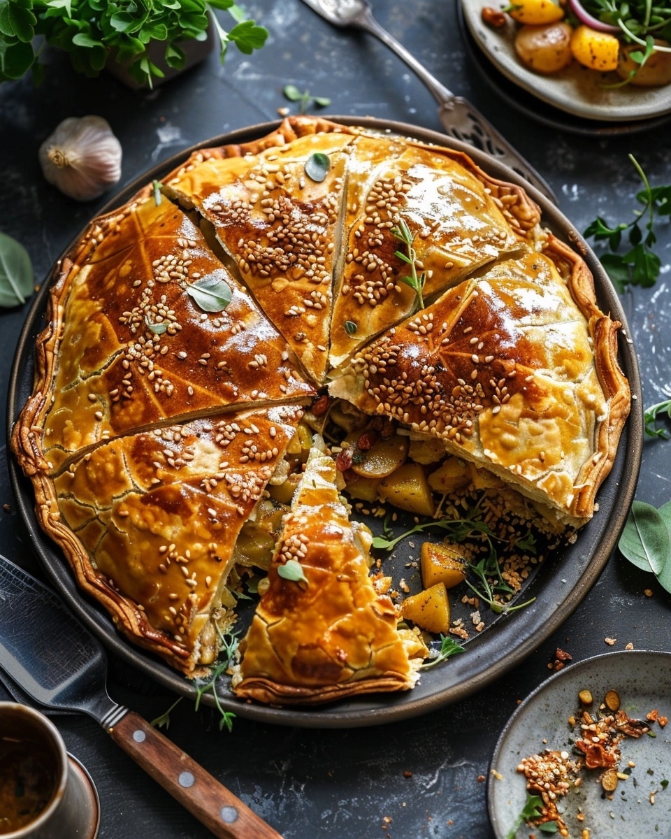 Samosa Pie with Spiced Chicken and Potato Filling a fusion twist on a beloved Indian snack, this samosa pie brings the bold, warming flavors of traditional samosas into a hearty, shareable dish. I layer a rich filling of spiced ground chicken, potatoes, peas, and fresh cilantro under a golden puff pastry crust, creating a comforting and flavor-packed meal that’s both satisfying and simple to prepare.