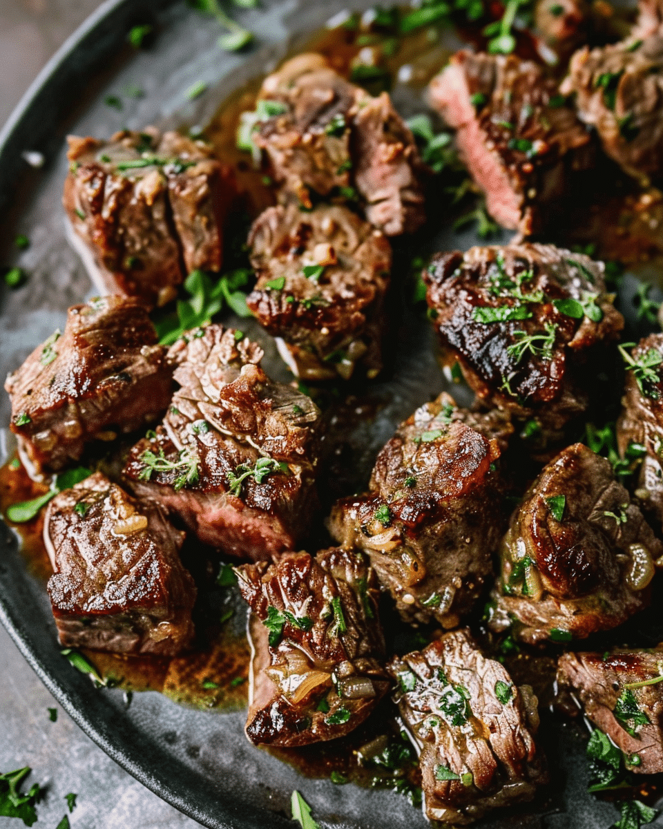 Juicy, tender steak bites seared to perfection and tossed in a rich garlic butter sauce — perfect for a quick dinner or a crowd-pleasing appetizer.