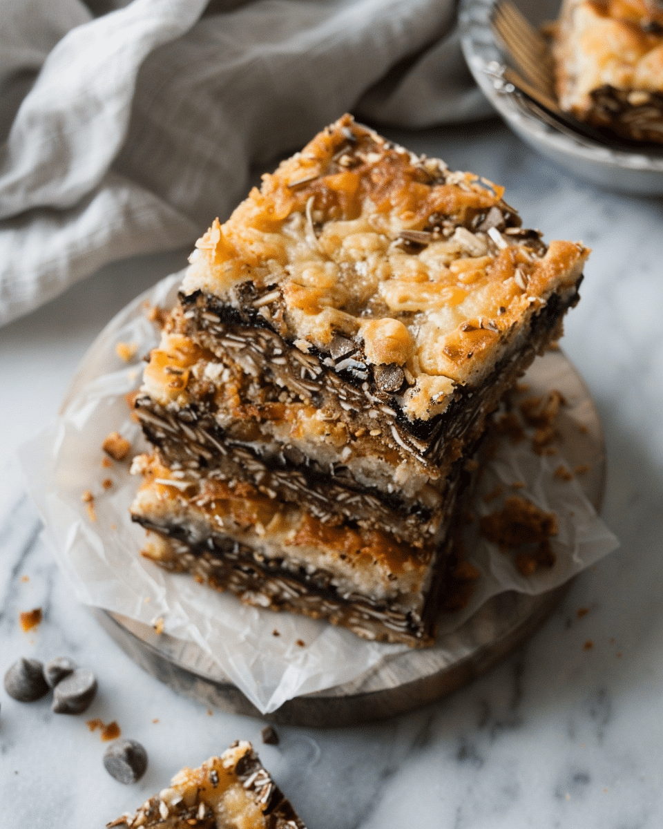I love this recipe because it delivers big flavor with very little effort. Everything comes together in one pan with no need for fancy tools or complicated steps. The contrast of textures—crunchy crust, chewy coconut, melty chips, and soft, gooey layers—makes every bite feel like a treat. These bars are a hit at parties, potlucks, and bake sales, and they store beautifully, which means I can make them ahead of time and enjoy them all week.