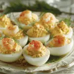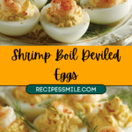 Classic deviled eggs get a Southern twist in this Shrimp Boil Deviled Eggs recipe, featuring creamy yolk filling seasoned with Old Bay, lemon, and chopped shrimp, topped with paprika and optional shrimp for extra flair.