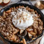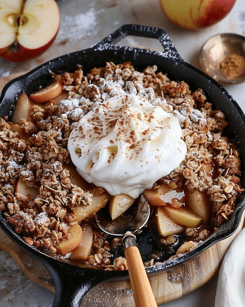 This Skillet Apple Crisp with Oatmeal Crumble combines tender apples with a buttery, sweet oatmeal crumble topping, all baked to perfection in a skillet, making it a comforting and rustic dessert.