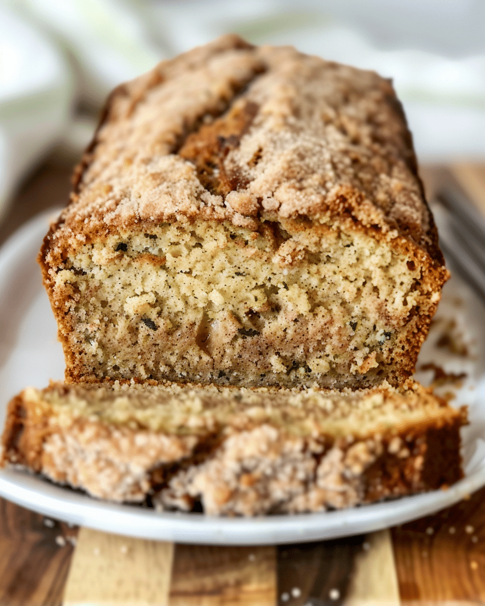 Fill and Top the Loaf Pan: Pour the batter into the prepared loaf pan and evenly sprinkle the cinnamon sugar mixture over the top.