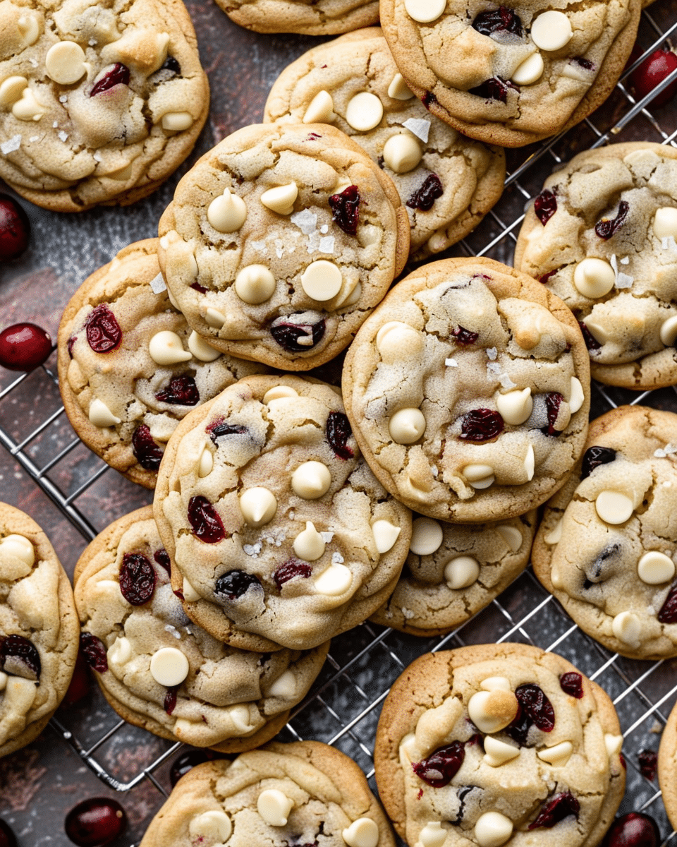 Chewy, golden cookies with white chocolate chunks and tart dried cranberries—perfectly balanced between sweet and tangy, and ideal for holidays or everyday treats.