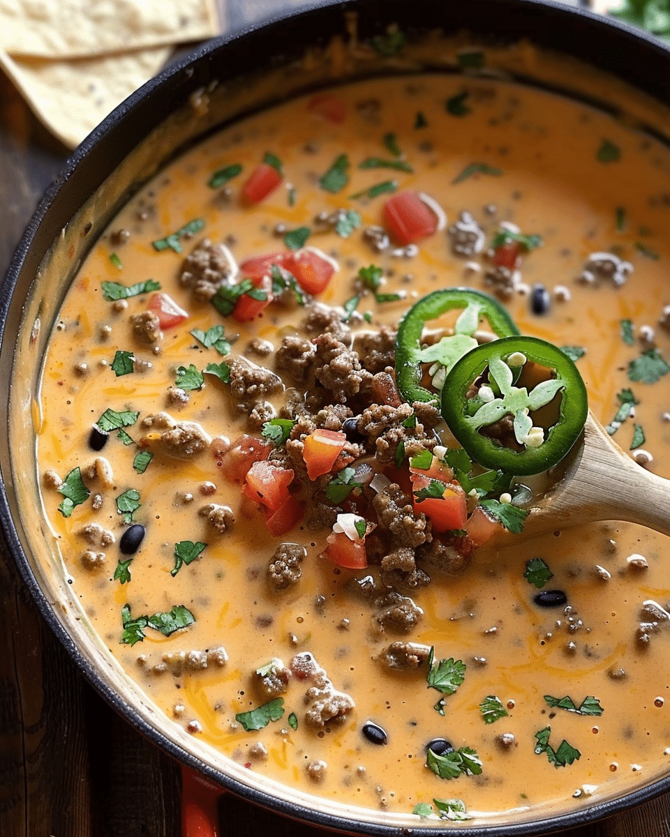 Spicy Cowboy Queso is a rich, creamy, and bold party dip that instantly becomes the star of any gathering. With hearty ground beef, spicy chorizo, fresh vegetables, and a luxurious blend of cheeses, this Tex-Mex classic is quick to prepare and even quicker to disappear once served. Whether it’s for game day, a family get-together, or just a cozy night at home, I always find this queso an irresistible treat.