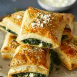Flaky puff pastry parcels filled with a savory mix of spinach, feta cheese, garlic, and onion. Perfect as a light lunch, appetizer, or party snack—easy to make and always a crowd-pleaser.