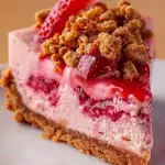 A creamy strawberry cheesecake topped with a buttery crunch crumble for the ultimate dessert indulgence. This Strawberry Crunch Cheesecake dessert combines the richness of cheesecake with a delightful strawberry flavor and a satisfying crunch topping, making it a standout treat for any occasion.