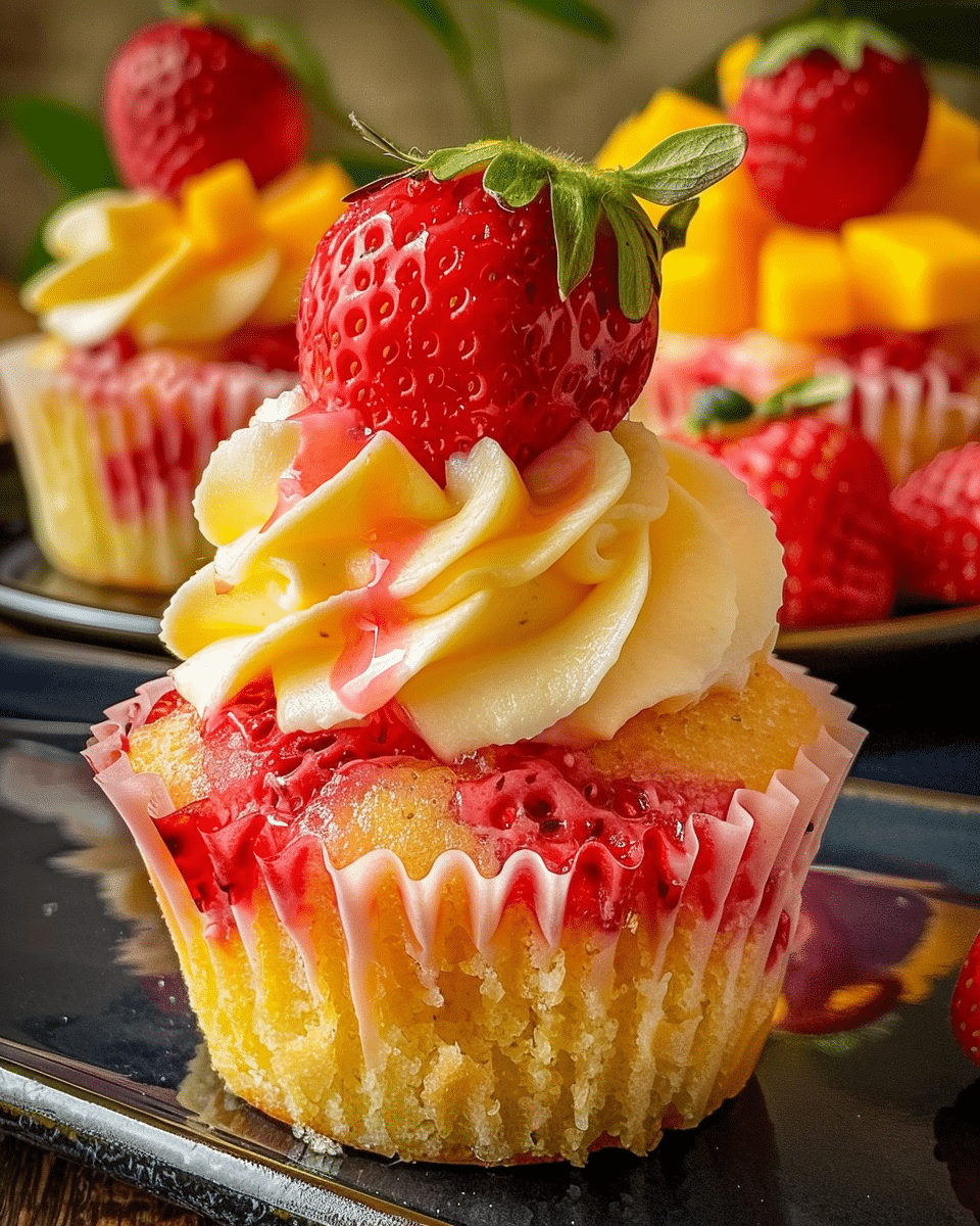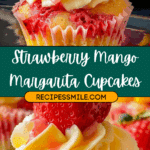 Indulge in a tropical treat with our Strawberry Mango Margarita Cupcakes! These vibrant cupcakes blend the fruity flavors of strawberry and mango with a hint of tequila for a festive twist. Perfect for summer parties or any celebration, these cupcakes are sure to delight your guests and add a splash of color to your dessert table.