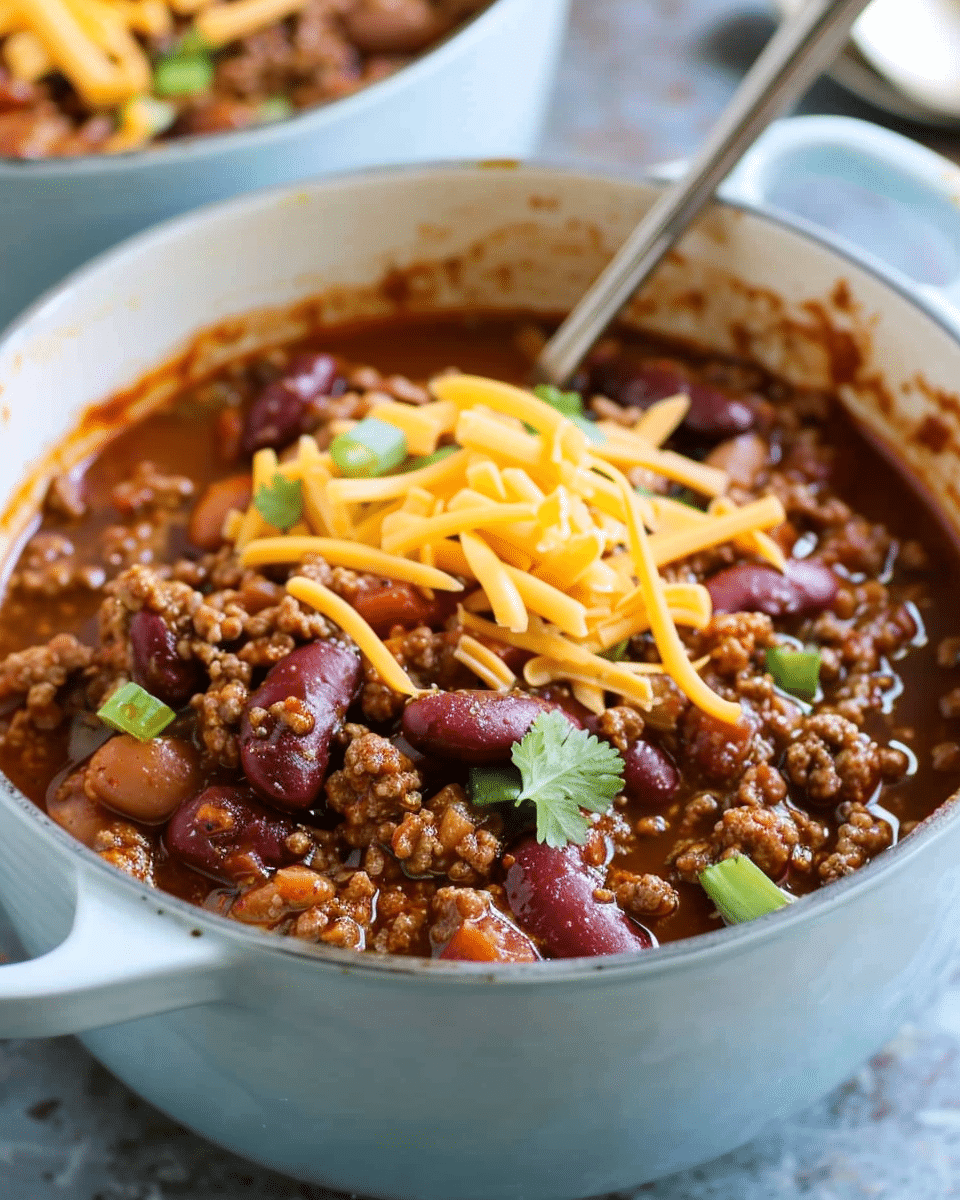 Enjoy a bowl of classic comfort with The Pioneer Woman Chili! This hearty dish features ground beef, kidney beans, and pinto beans simmered in a rich tomato base, seasoned with flavorful spices. Perfect for a cozy meal or game day, this chili is easy to make and customizable to your taste. Top with cheese, sour cream, and fresh herbs for a delightful finish!