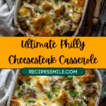 This Ultimate Philly Cheesesteak Casserole takes everything I love about the classic sandwich—tender beef, sweet peppers, onions, and provolone cheese—and turns it into a comforting, oven-baked dish. With a savory custard base made from eggs and cream, it’s a rich and hearty dinner that satisfies every craving for cheesy, meaty goodness.