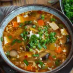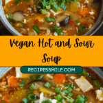A comforting, spicy, and tangy vegan hot and sour soup made with tofu, mushrooms, and vegetables. This plant-based version of the classic Chinese soup delivers bold umami flavor, heat, and tanginess in every nourishing bowl.