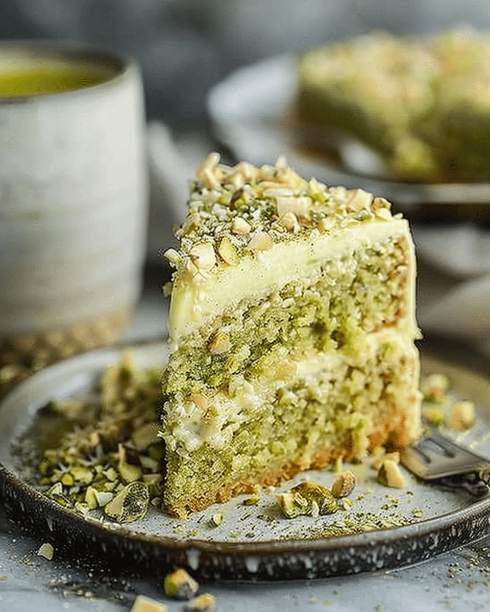 I love how this cake combines the nutty richness of roasted pistachios with the deep aroma of espresso. It’s made entirely without dairy or eggs, but no one would guess—it’s tender, flavorful, and just the right amount of sweet. The pistachio crumb topping adds a delightful texture and a beautiful finish. Whether I’m serving guests or treating myself, this cake always feels like a little luxury.
