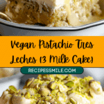 This Vegan Pistachio Tres Leches Cake is my go-to when I want something elegant, comforting, and plant-based. It captures everything I love about tres leches—the moist crumb, the sweet soak, the creamy topping—while staying completely dairy-free and eggless. Whether I’m serving it at a celebration or treating myself on a quiet night in, it’s a dessert that always delivers.
