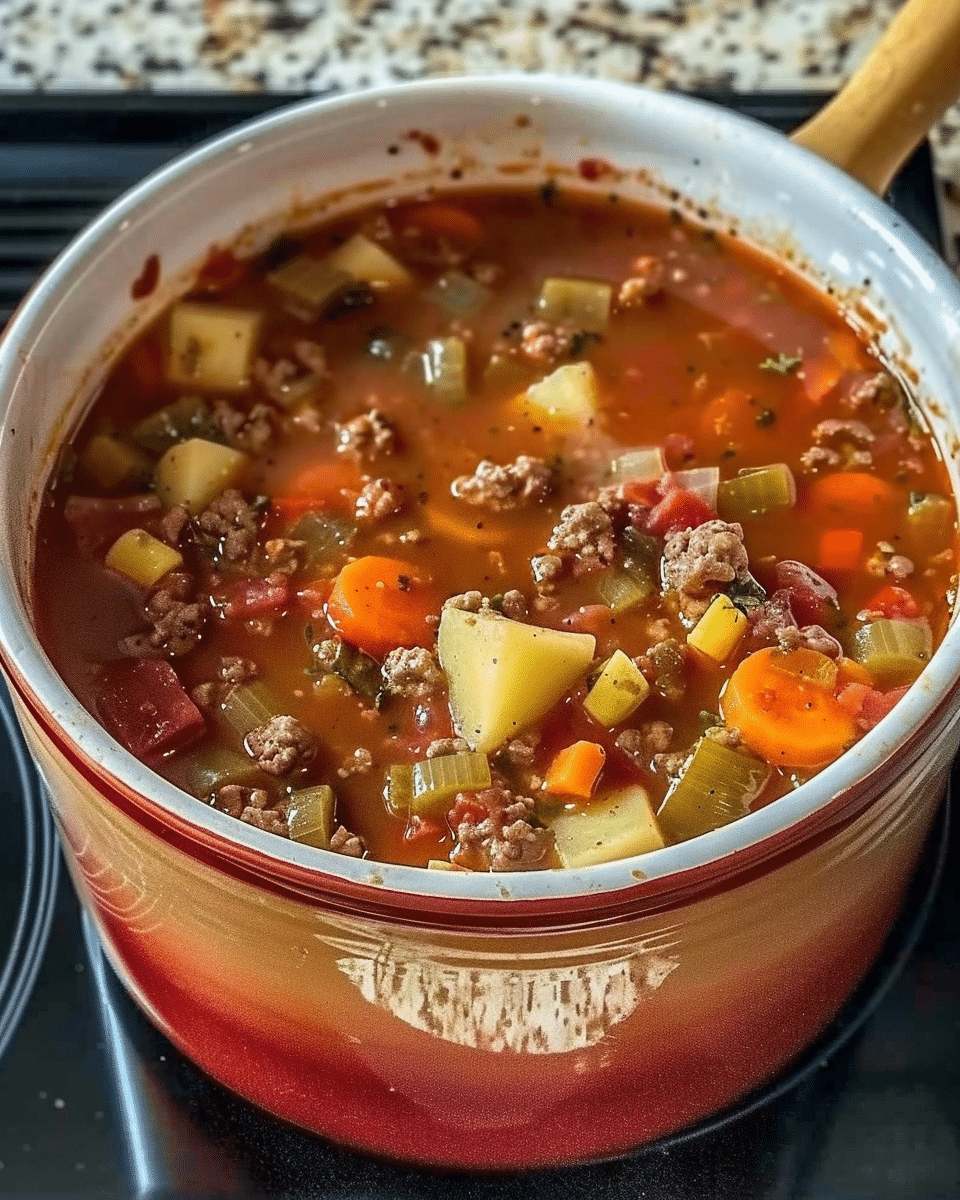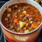 There’s nothing quite like a bowl of vegetable beef soup to warm you up on a cool evening. This easy-to-make soup features tender ground beef, mixed vegetables, and potatoes simmered in a savory tomato broth, making it the perfect meal to serve your family on chilly days. The rich flavors of beef, tomatoes, and Italian seasoning come together beautifully, offering a delicious and satisfying dish. Whether you’re looking to enjoy a cozy dinner or meal prep for the week, this hearty soup will hit the spot.